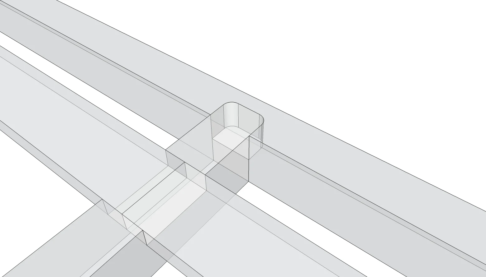 The joints I ended up designing had three primary qualities. (1) Ease of Manufacturing, the joints are designed to be easily made with a hand router and a laser cut plexiglass template or with a CNC router. (2) Ease of Assembly, each joint contains only two components, unlike some japanese joinery which often has three or more. (3) Strength, the joints are rounded and robust enough to hold up under normal use and to not be easily damaged when disassembled and transported.