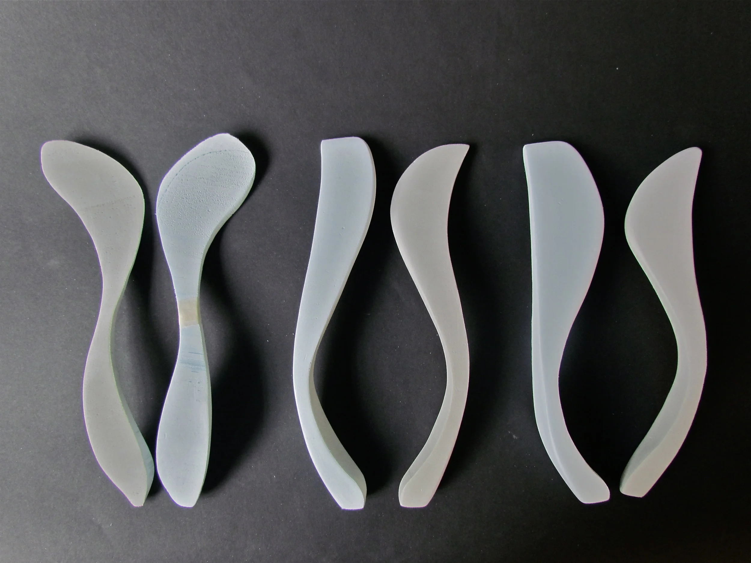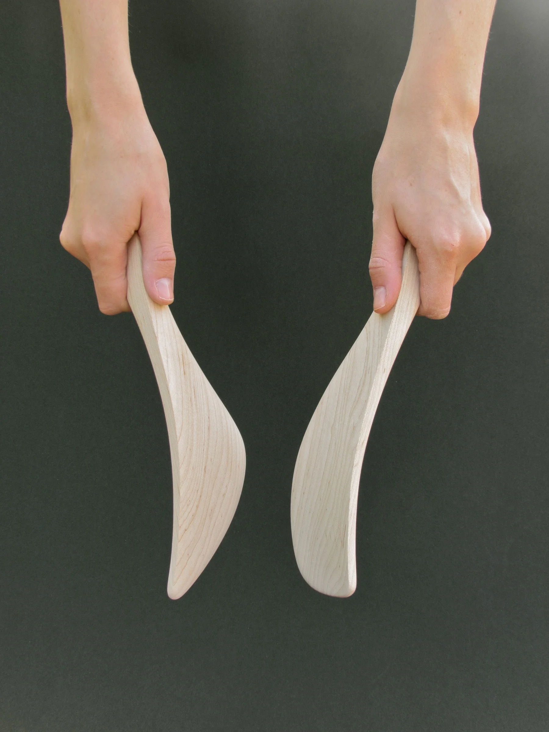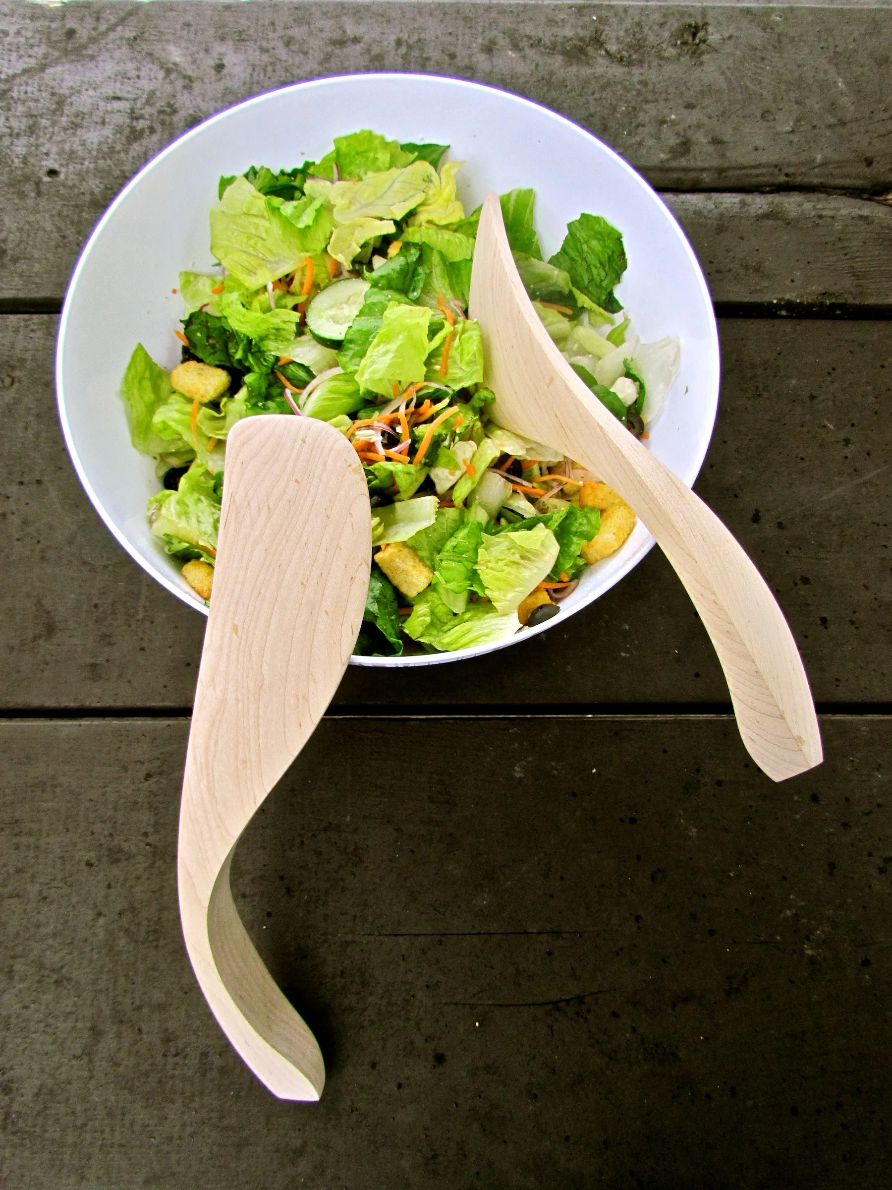 The purpose of this project is to understand the ways in which flowing lines can be used. How do two lines play off of one another, create and stop flow, and direct the eye? To explore these issues we were tasked to design and craft a pair of salad tongs. Made from blocks of 1" X 2" X 7" maple wood, we were allowed two cut lines of the top face and two cuts on the side.
